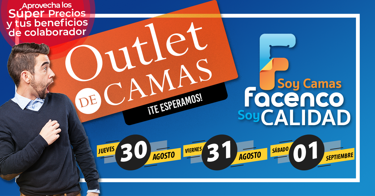 ¡Te invitamos a nuestro Outlet de Camas los días 30, 31 de agosto y 1 de septiembre, en el pasillo de camastrones!
