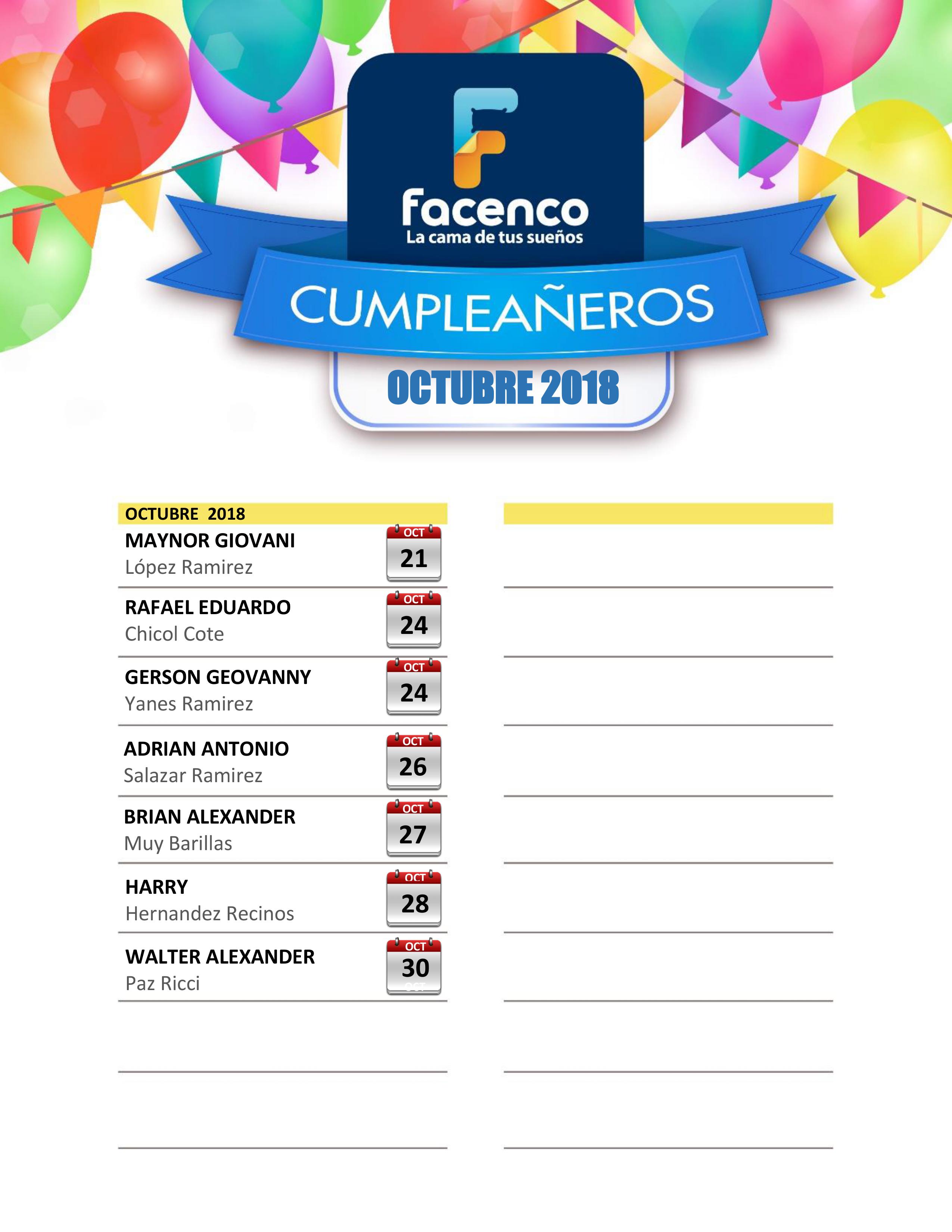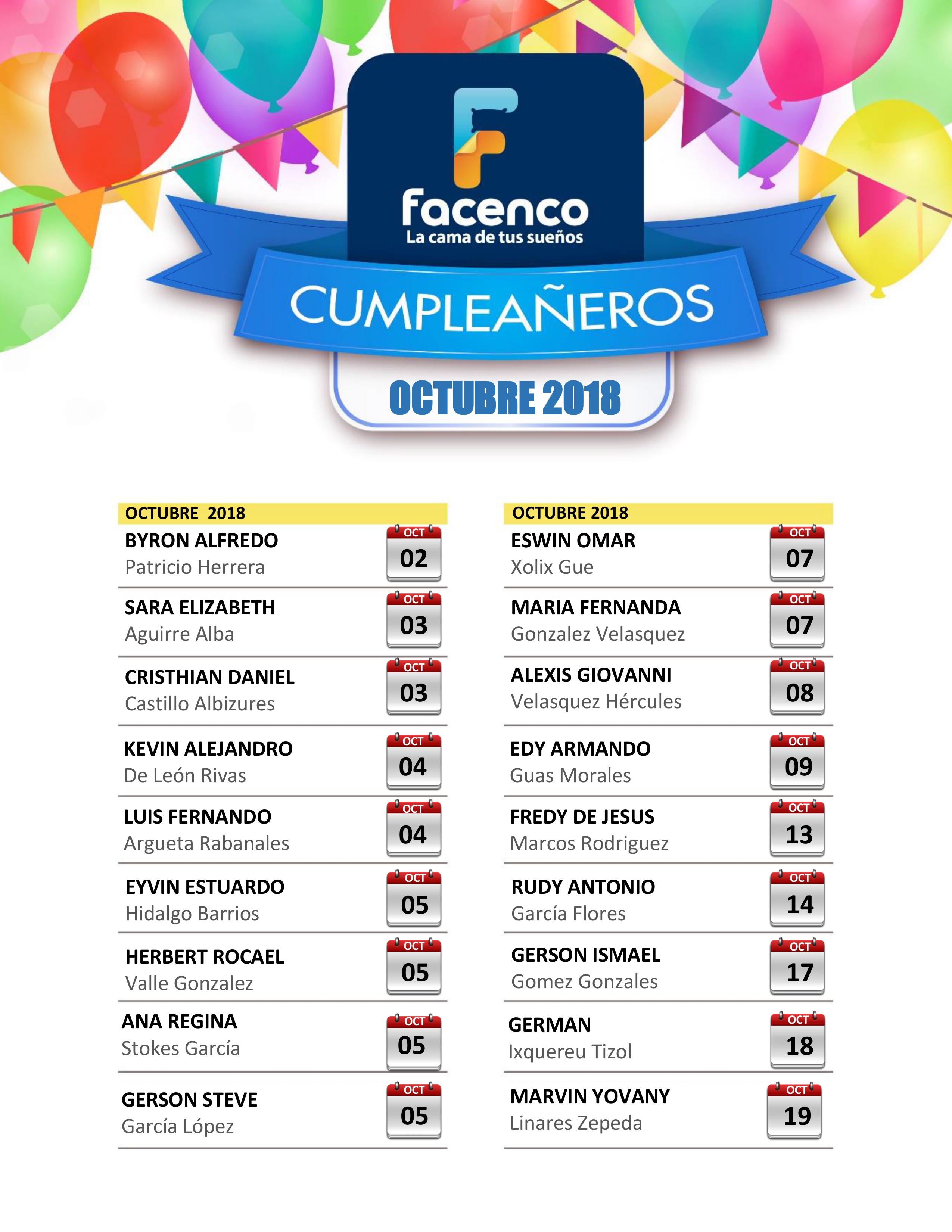 octubre 1, 2018 Recursos HumanosPublicado en Casa Matriz, CEDI, GuatemalaEtiquetado Recordatorios ¡Felicidades a todos nuestros colegas guatemaltecos que cumplen años en este mes tan especial!